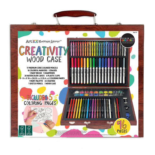 Art 101 Budding Artist 96 Piece Kids Creativity Wood Case Art Set
