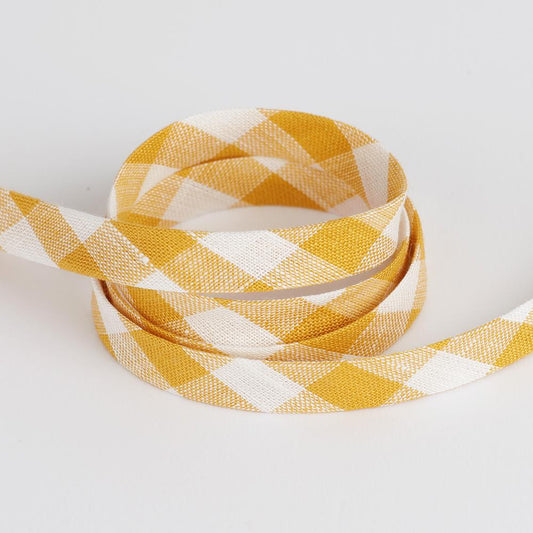 Gingham Linen Bias Binding - Canary