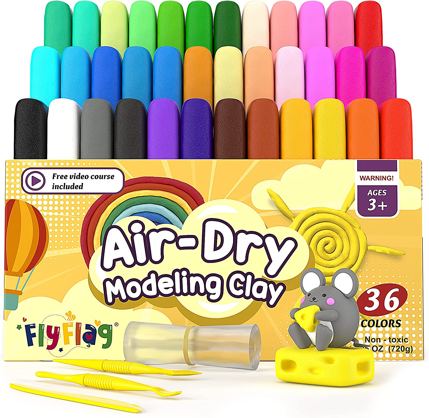 FLYFLAG Air Dry Clay 36 Colors, Soft & Ultra Light, Modeling Clay with Accessories, Tools and Tutorials