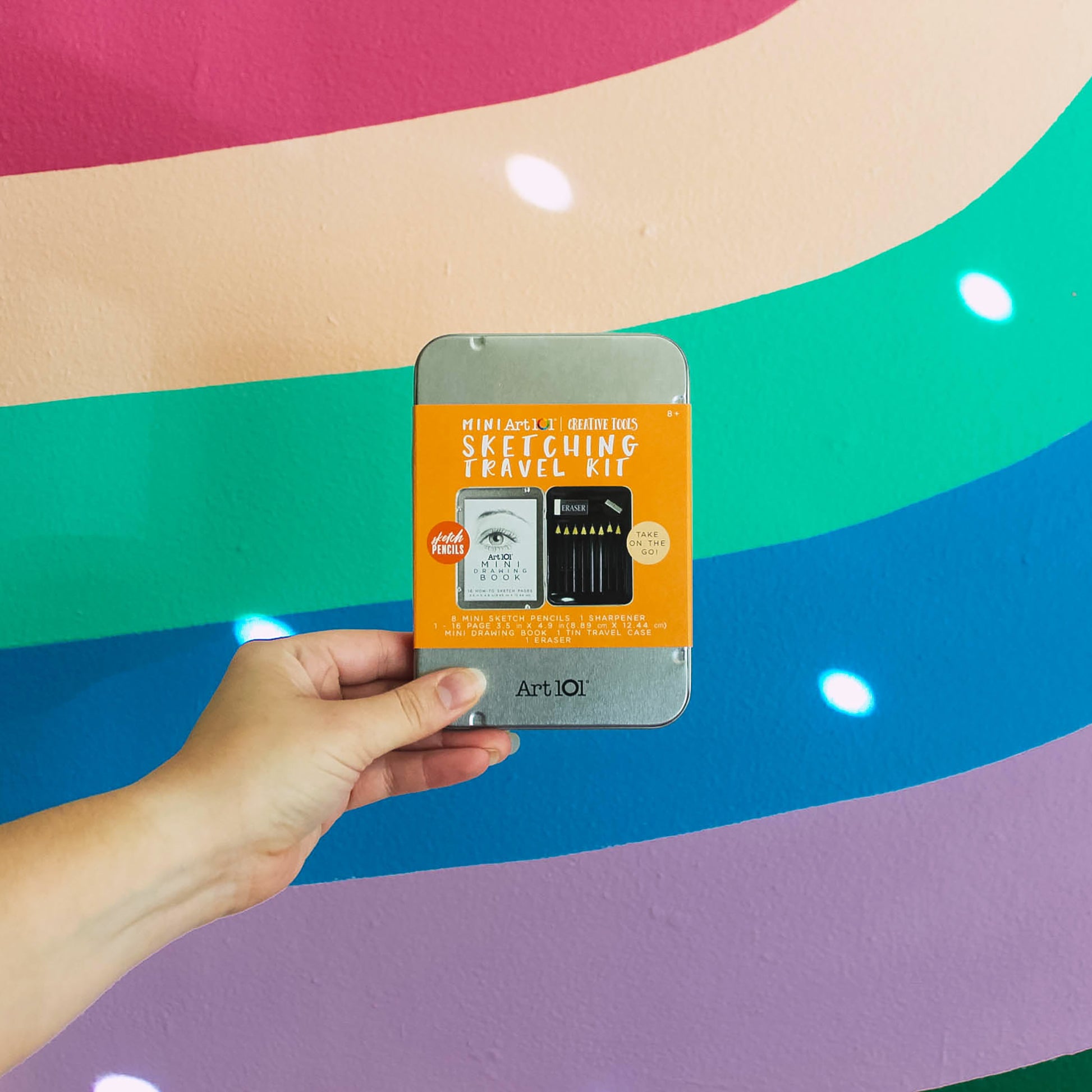 Art 101 Crafts Mini Sketching Travel Kit includes everything you need to sketch on-the-go! This tin is small but mighty- it contains 8 different mini sketching pencils to choose from each with a different look or purpose. The included mini sketch book with 16 pages of inspiration and tutorials. This travel kit is the perfect size to keep handy with you wherever you go, wherever your inspiration may strike you!