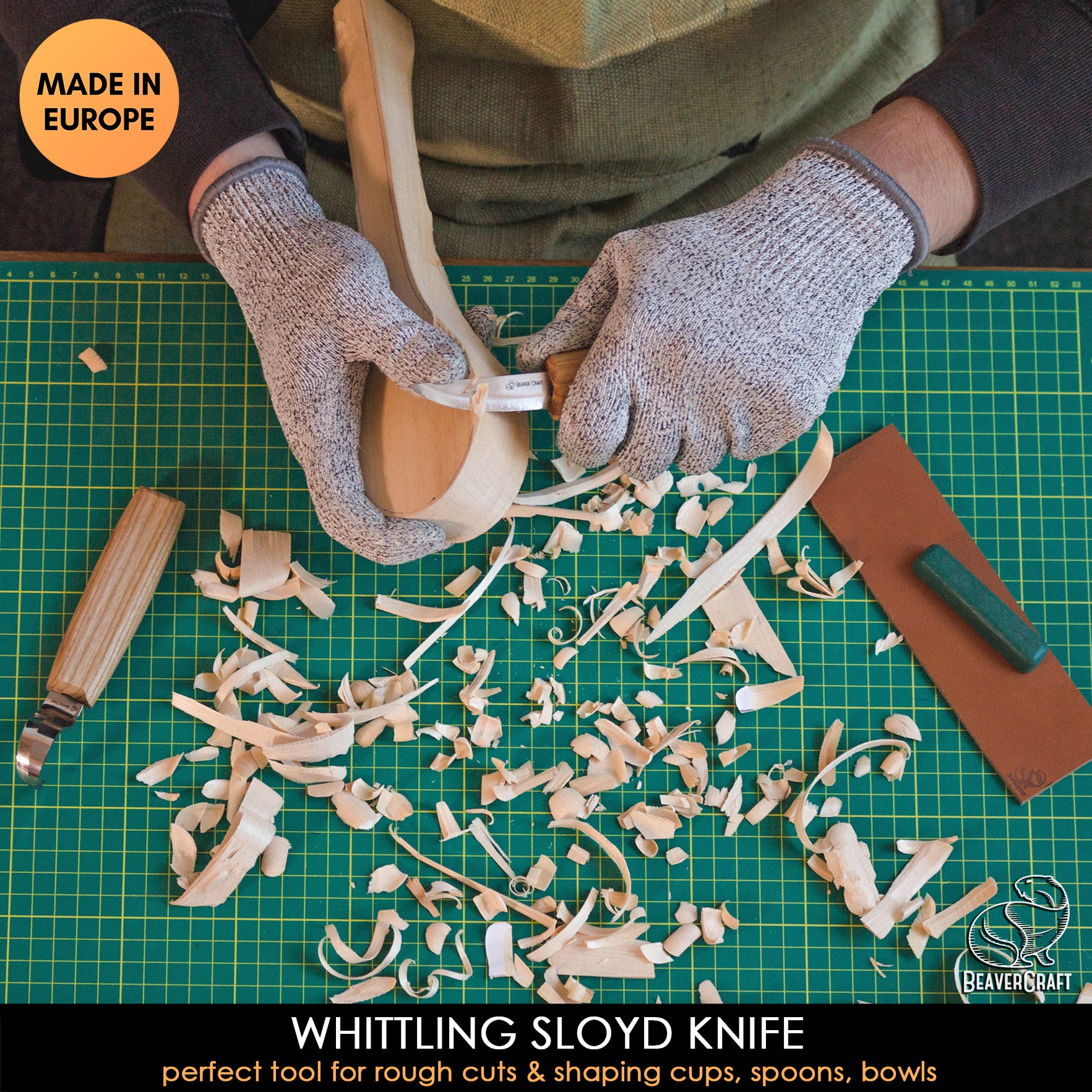 Wood carving set spoon making you'll get a sloyd knife + a hook knife. Simple things you need to enjoy wood carving & green woodworking. Spoon carving tool included - Beavercraft wood carving accessories such as hook knife called also as a kuksa knife will help you with kuksa carving, wood spoon carving, bowl carving, cups carving and other rounded edges carving. At the time we started manufacturing wood carving tools we figured out that there is no proper wood carving set that could cover needs of carving spoons and delicate wood cutting and whittling & roughing wood out, at the same time sharpening and polishing. There was no full carving kit until now. We made our own wood carving kit and we are proud to share these carving tools with you, either you're a beginner or an experienced woodcarver you'll find a use for it anyway.