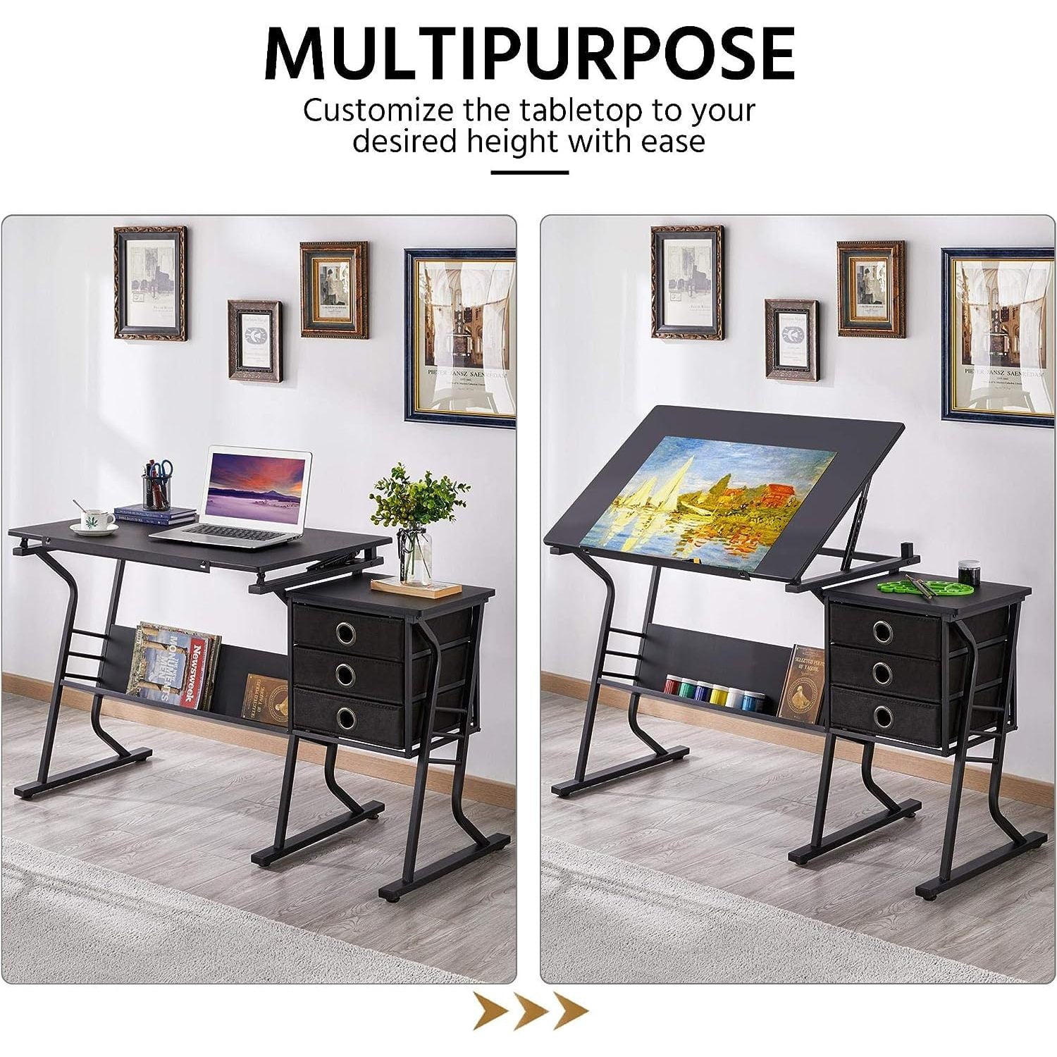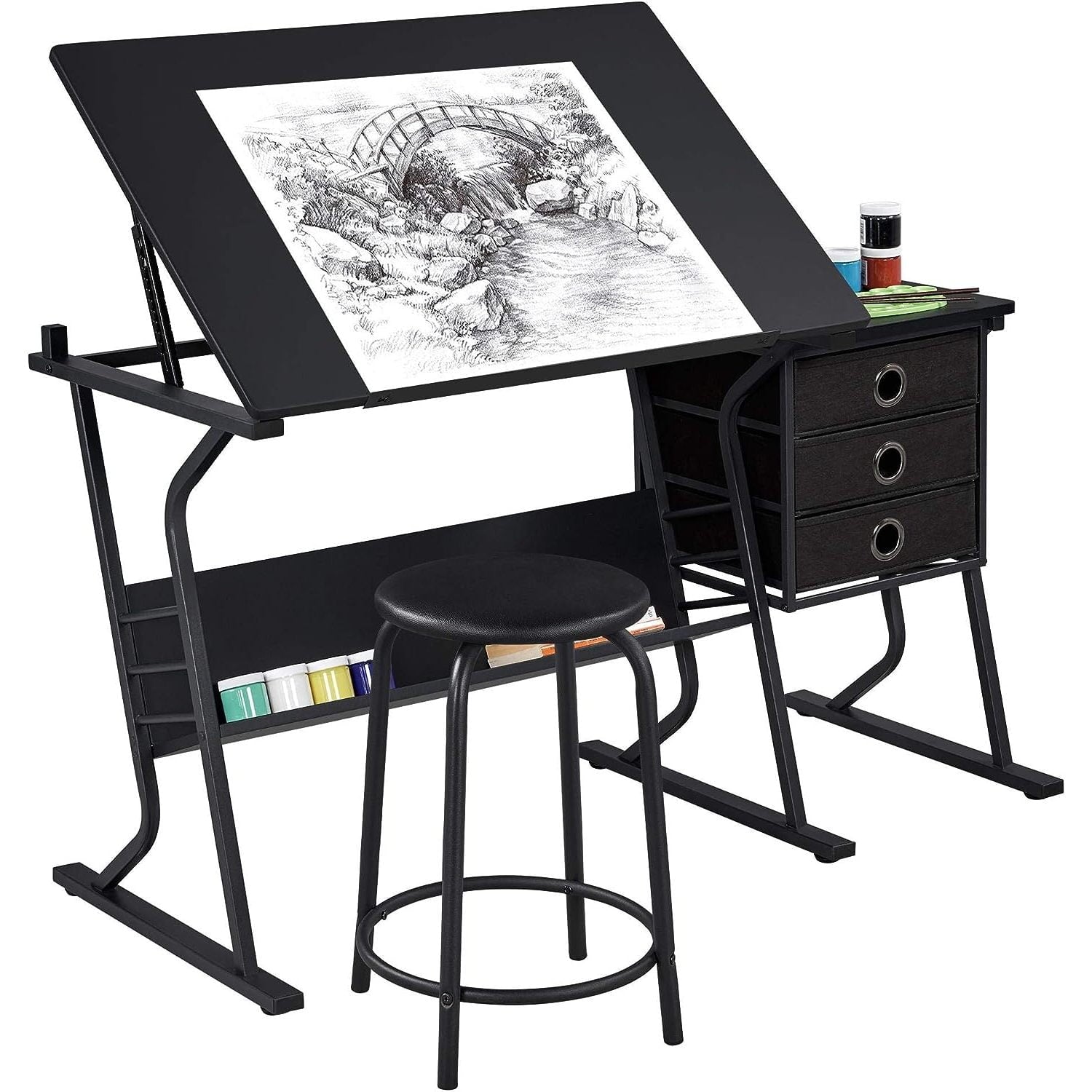 Chictail Height Adjustable Drafting Table with Stool & Storage Drawers