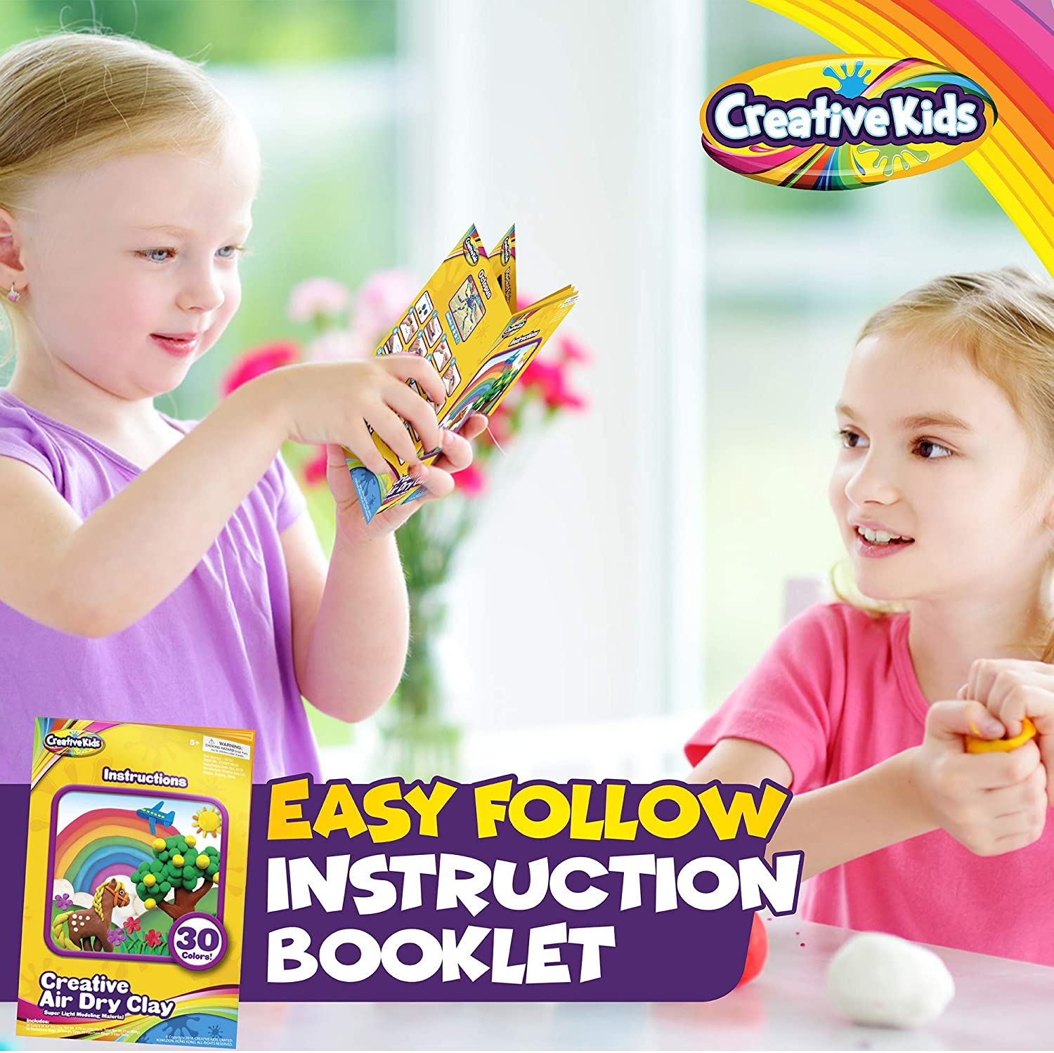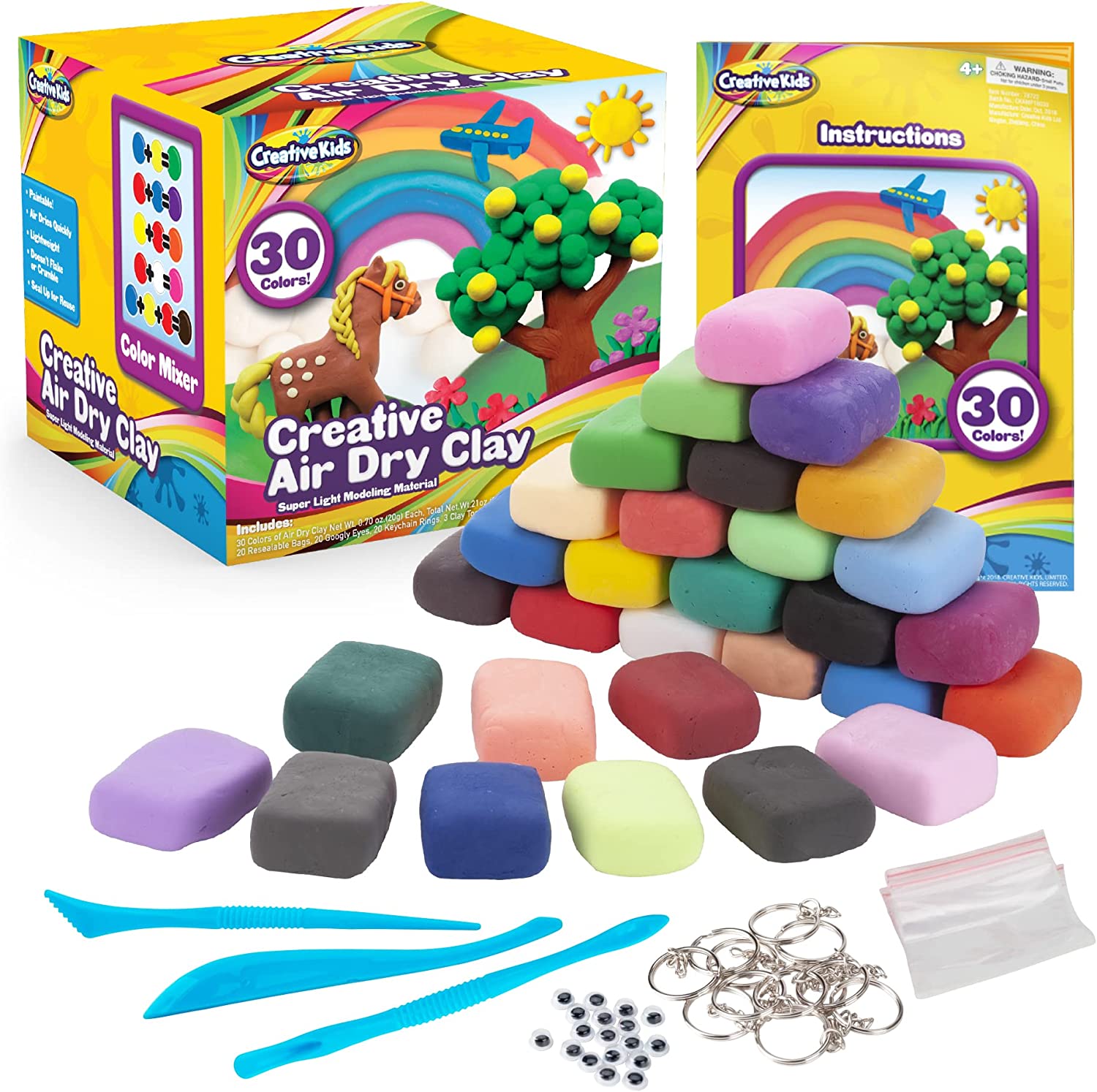 Creative Kids Air Dry Clay Modeling Crafts Kit for Children - 30 Vibrant Colors & 3 Clay Tools