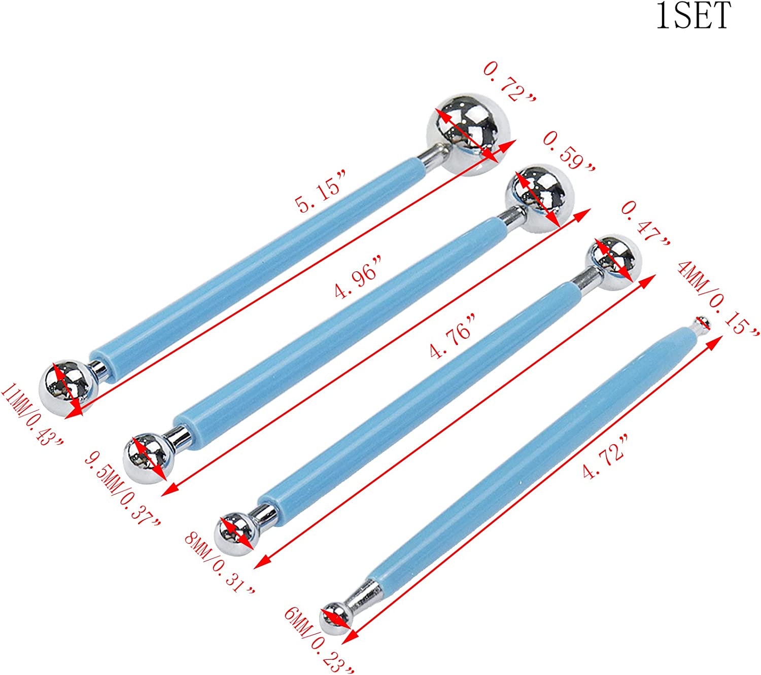 1SET/4PCS Blue+Silver Modelling Ball Tool,Pottery Sculpting Tools,Pottery Tool Ball Stylus