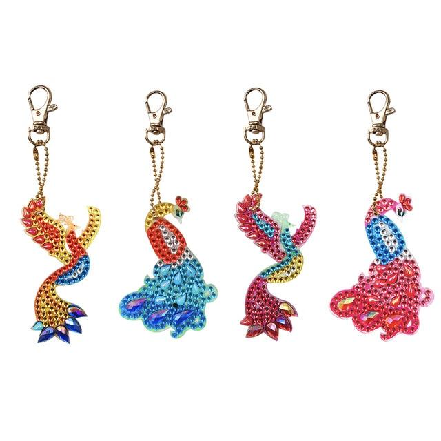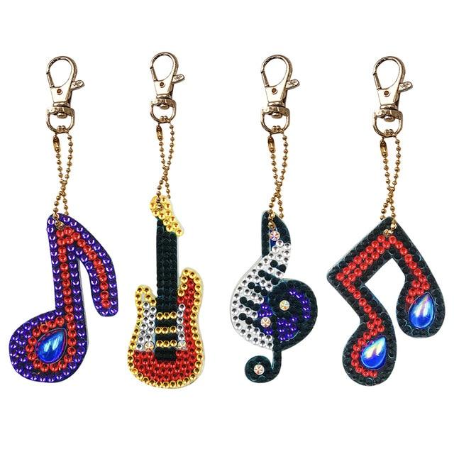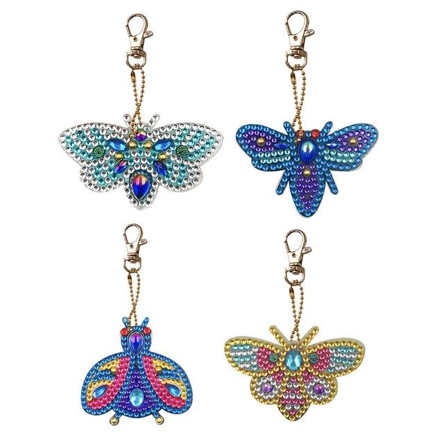 4pcs DIY Full Drill Special Shaped Diamond Key Chain Bee Pendant Cross Stitch Embroidery Keyrings Needlework Craft