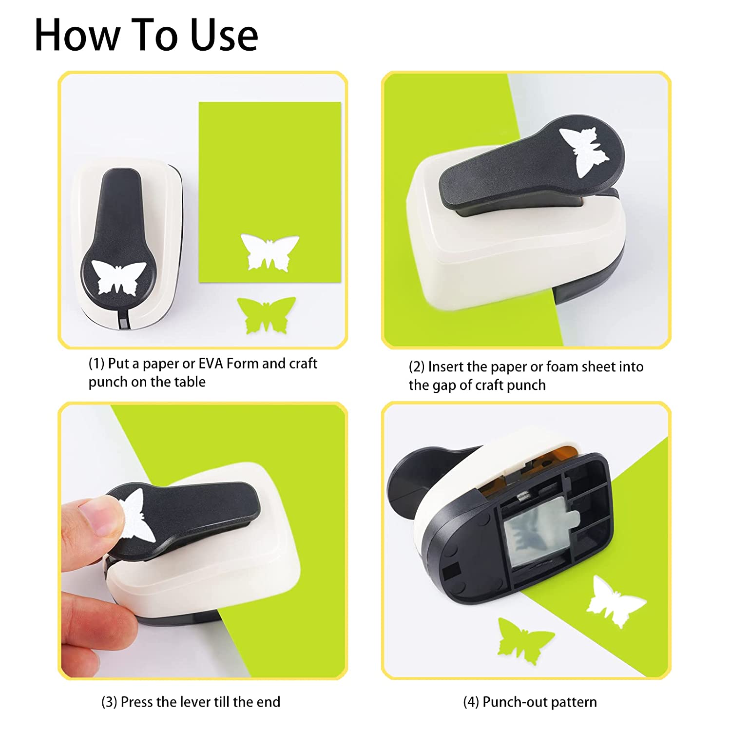 - ❉ PROPER MATERIALS ❉ Plain paper, EVA foam, aluminum foil, kraft paper and other similar materials in thickness of less than 2 mm is suitable to our hole punches. Quickly punch down with vertical force and then a precise cutout with neat edges will come out.