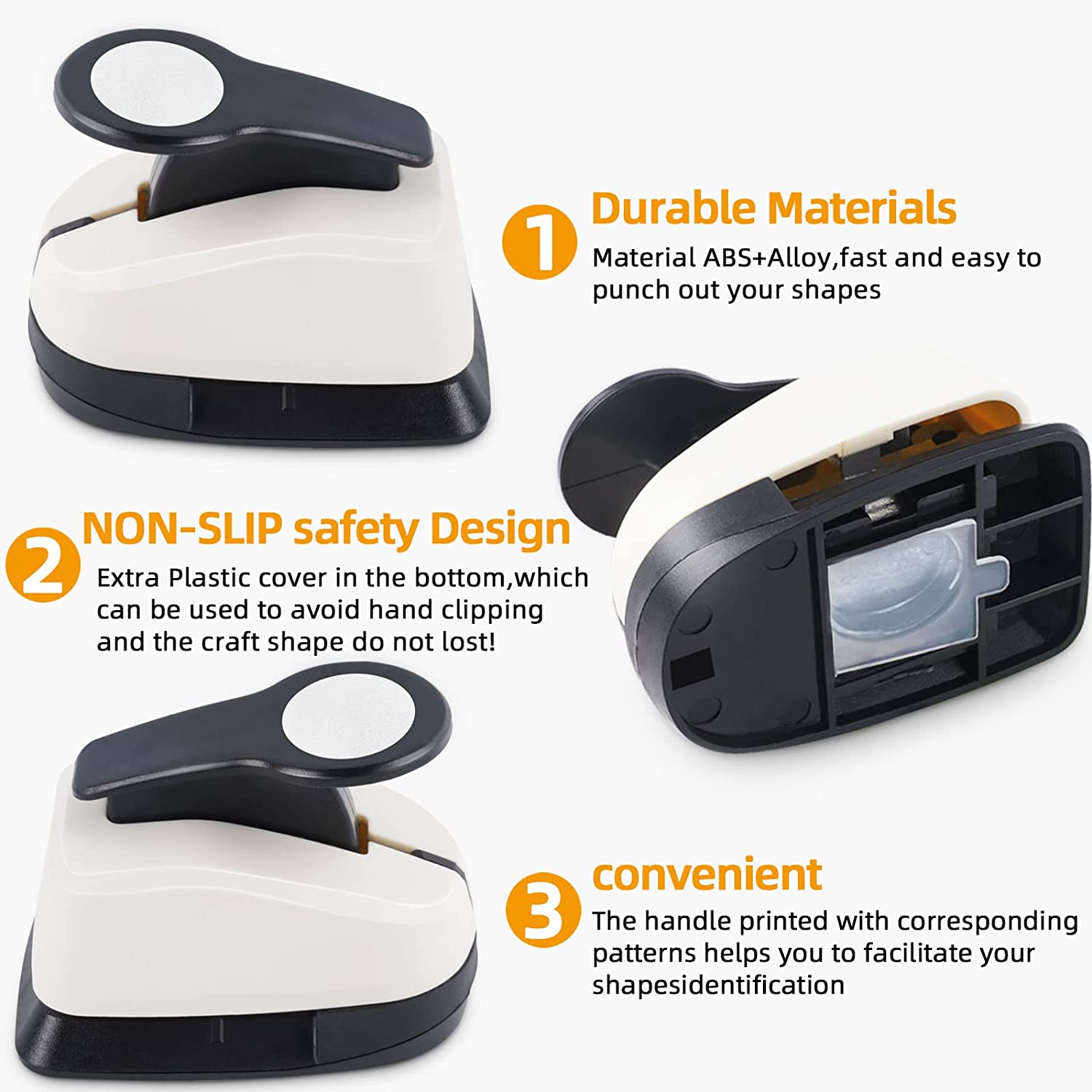 - 🌷 USER-FRIENDLY 🌷 There's a openable cover at the bottom, which can collect cutouts, preventing paper pieces dropping down here and there. Closed cover can avoid children's finger hurting. Transparent cover help locate. Use this puncher upside down to accurately observe position and get a perfect shape.