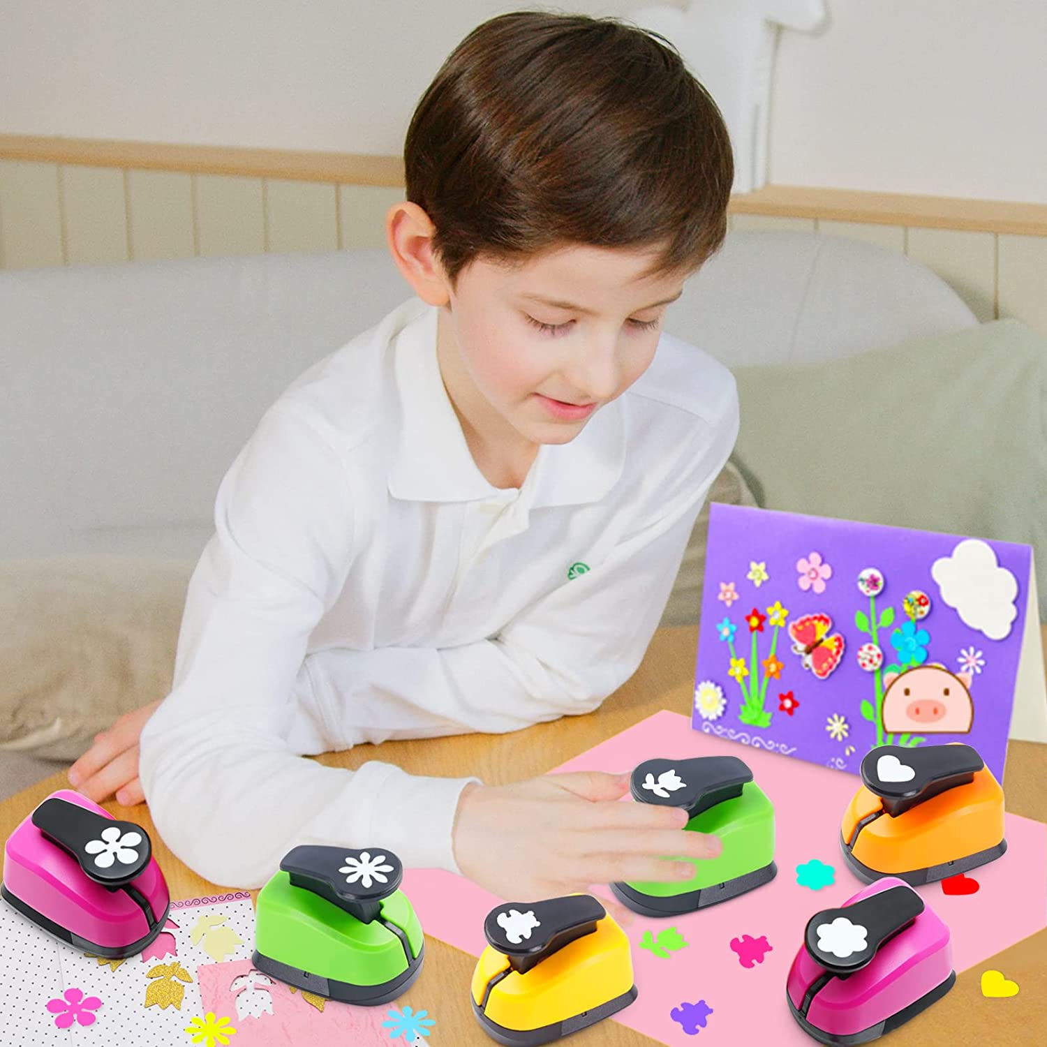 - 🌼 WIDE APPLICATIONS 🌼 With this set hole punch, you can create your own decorative cards, envelopes, kids artwork, scrapbook pages, photo frames, origami, greeting cards, diary, gift wrap, ornament and more. Especially suitable for interactive programs of teachers and students, hand-made activities for parents and kids.