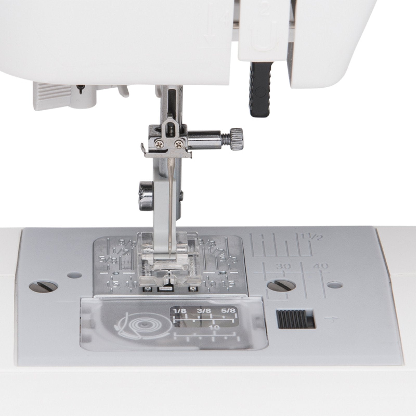 - Extra high presser foot lift is ideal when stitching over denim seams and other bulky fabrics