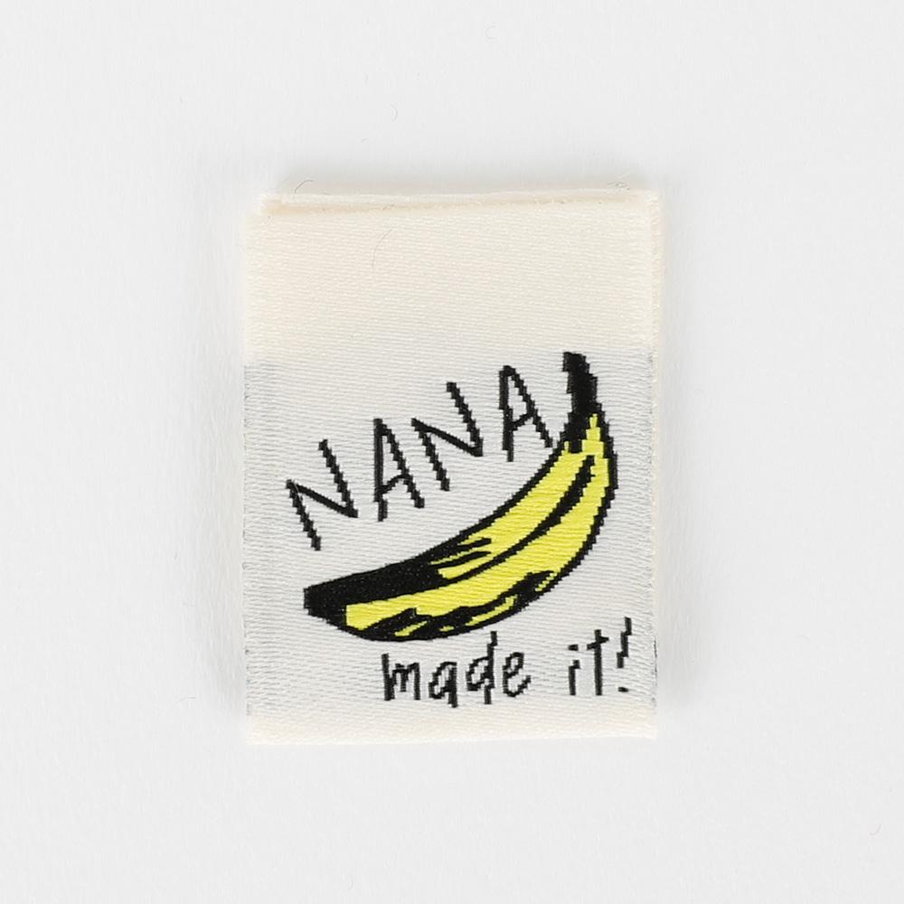 A pack of 8 Nana Made It woven garment labels by Kylie and the Machine. The pip labels are centre-folded with black writing on an ivory base and a yellow and black banana motif, ideal for placement on the back neck or side seam. Labels by Kylie and the Machine are woven using superfine Oeko-Tex 100 certified thread to create a crisp design and smooth finish. These high-quality labels are washable, colourfast, durable and the perfect finishing touch for any me-made garment! All labels are designed in Australia and packaging is made using recycled/recyclable materials.