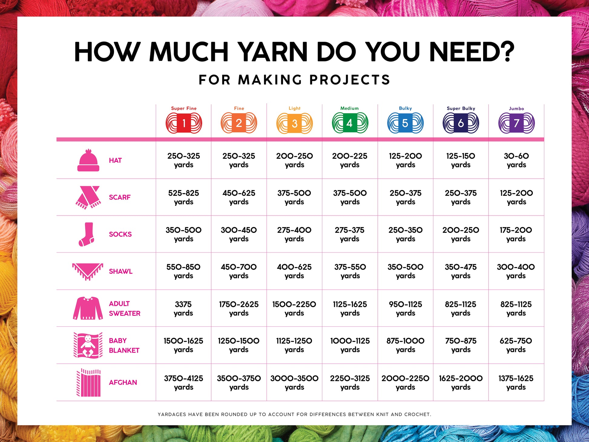 • Yarn Weight: 6 Super Bulky• Crochet Gauge: 6.6 sc x 8 r on N-13 (9mm)• Knit Gauge: 9 sts x 12 r on #13 (9 mm)• Yardage: 162yd solids (129yd prints) / 148m solids (118m prints)• Weight: 10oz solids (8oz prints)/ 284g solids (227g prints)• Fiber Detail: Solids, Multis, Neons and Twists: 100% Acrylic / Tweeds: 94% Acrylic, 6% Rayon• Care Detail: Machine wash - Initial water temperature should not exceed 40°C or 105°F. No bleach product may be used. A machine dryer may be regularly used at the hottest available temperature setting.•