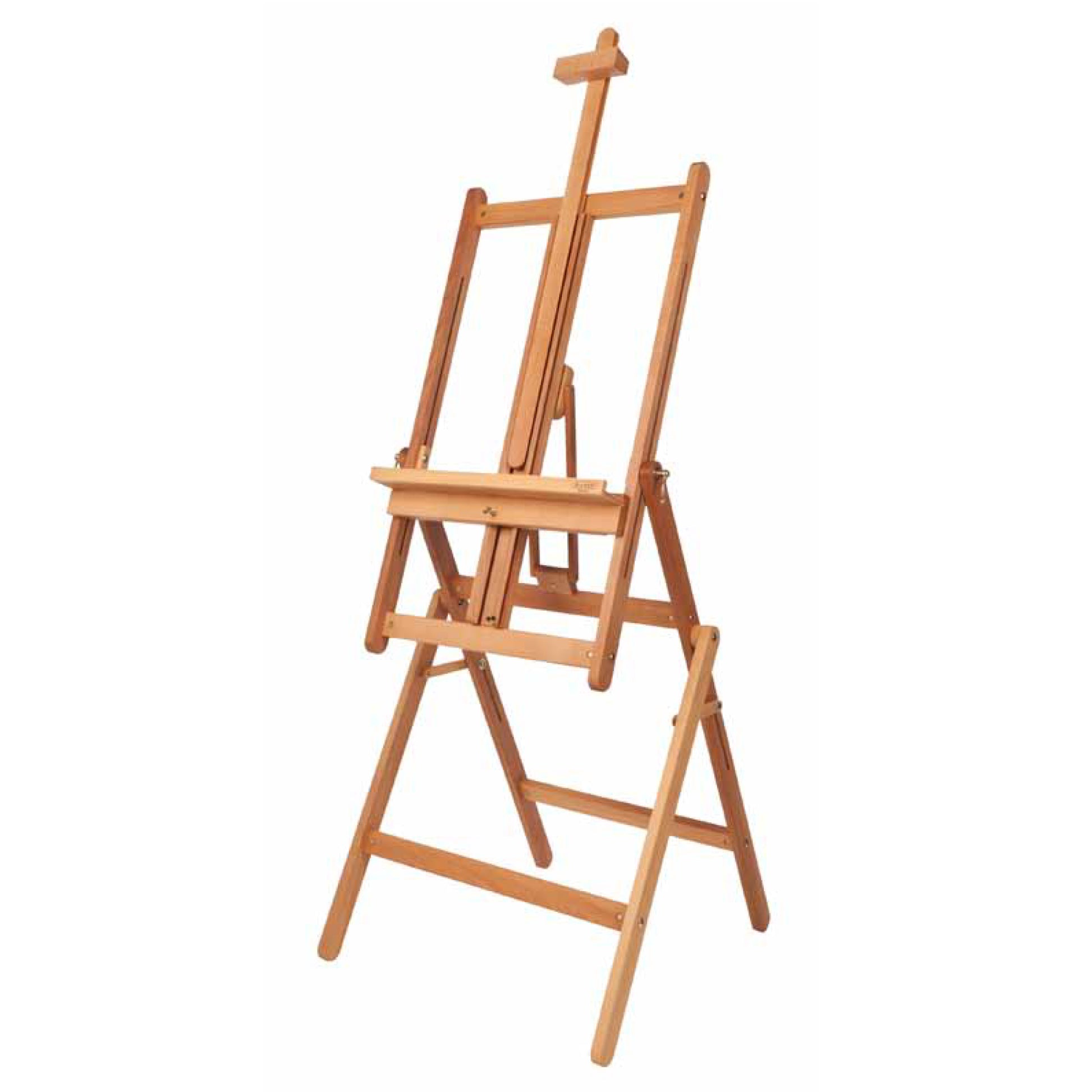 Oiled, sanded beechwood construction, Canvas holder can be angled from vertical to horizontal forming a 36-1/4" high table for use with watercolors, Accommodates canvases up to 53-1/8", Weighs 17-1/2 lbs., Simple assembly required, Lifetime Guarantee, Quality Italian craftsmanship