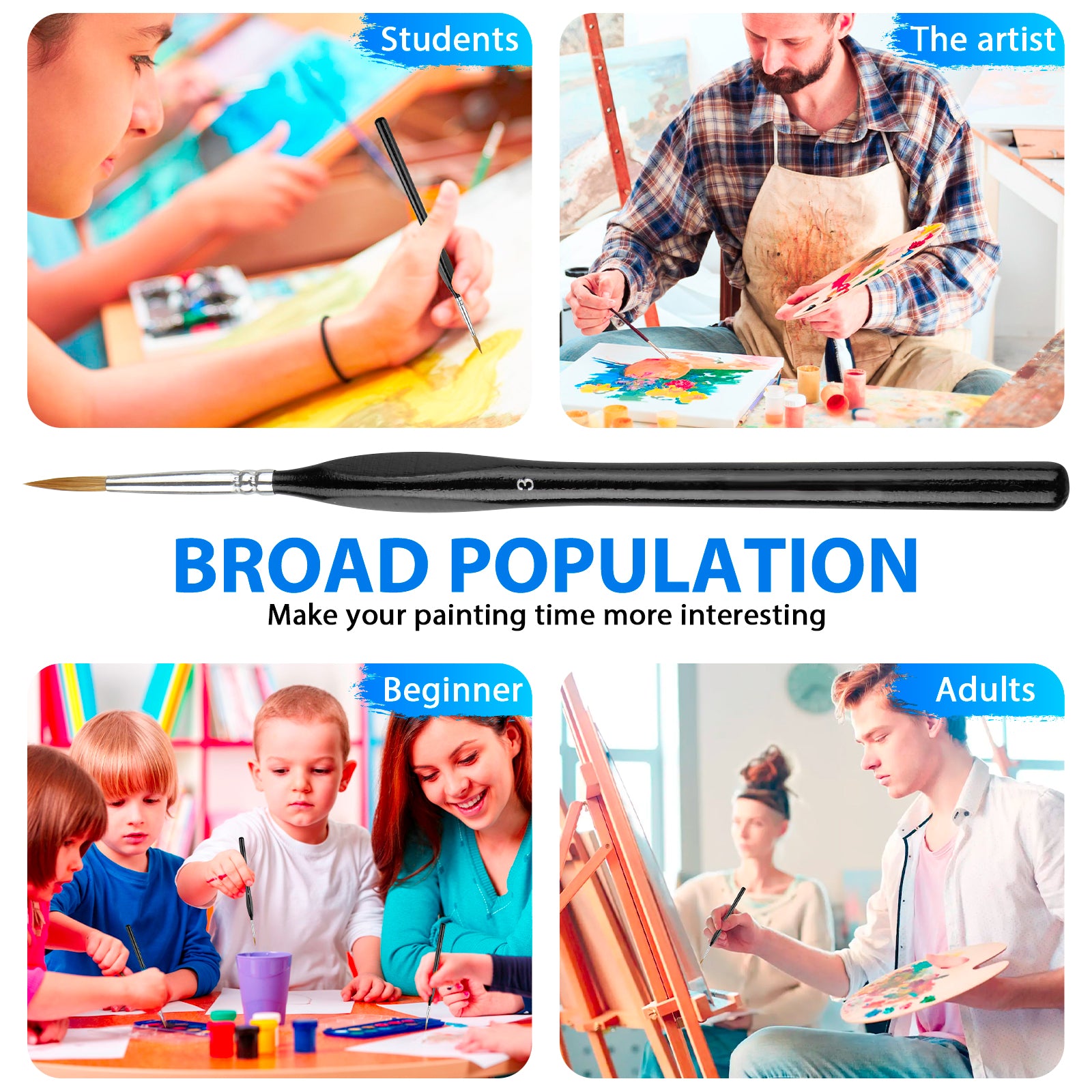 Saving money for customers and providing good products has always been the mission of EEEkit. This 9 PCS art miniature brush set has the characteristics of good elasticity, soft bristles, high water absorption, not easy to crack, not easy to fall off, etc. Having 9 different thickness detail brushes (including 000/00/0/1/2/3/4/5/6 ) not only helps with positioning and long lines when drawing, but also allows you to accurately grasp the details of your drawing. Perfect to meet your various needs when painting. In addition, the beautiful and comfortable Micro Detail brushes provide you with the perfect combination of balance and comfort, making even long periods of painting effortless. This is the consistent brushstroke that every artist aspires to. The EEEkit 9 PCS Multipurpose Art Brush can be used with virtually any type of paint. Not only can be widely used in watercolor oil, acrylic paint, face painting, ceramics, craft painting and other artistic painting creation, but also can be used as Christmas, Easter, Valentine's Day, Thanksgiving, party, New Year, Halloween or birthday gifts for children, a gift for family, classmates, friends or anyone who loves to draw. If you love painting too, don't miss our 9PCS of miniature brushes.