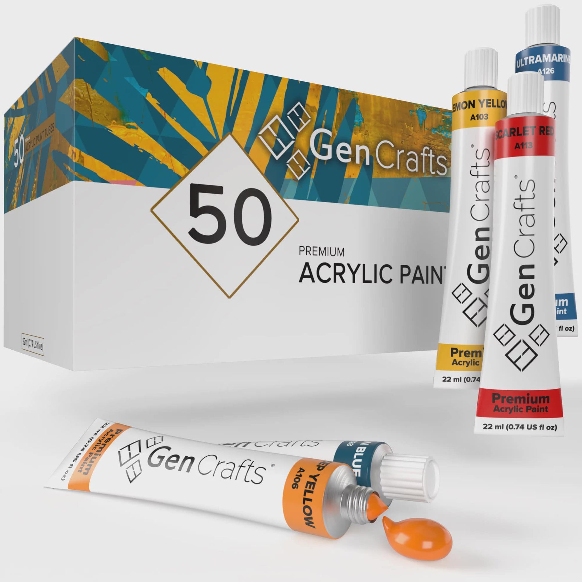 Professional Acrylic Paint Tubes Set of 50 by GenCrafts