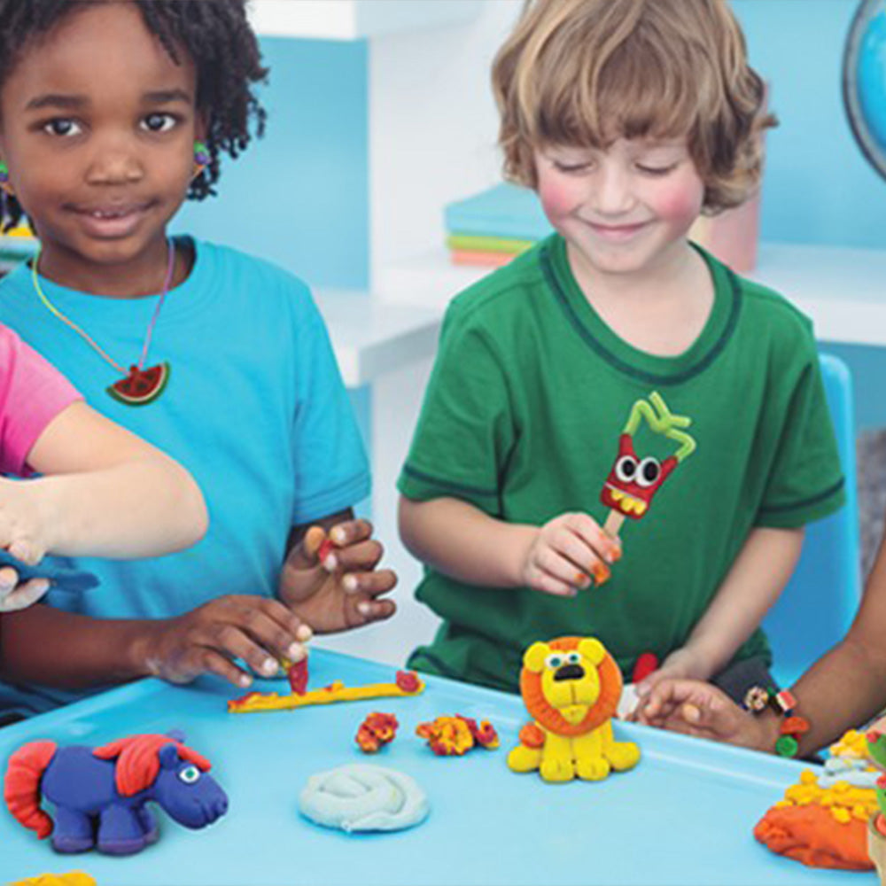 Go Create! Non-dry modeling clay won't dry out. The modeling clay is designed to continue to be pliable and re-moldable months after you open it, so you can re-use it again and again. Perfect for claymation videos, general sculpting and hours of creating! Children can create for hours and not have to worry about the clay going hard or drying out. Contains 5 bars of clay in these colors: white, black, brown, blue and green.