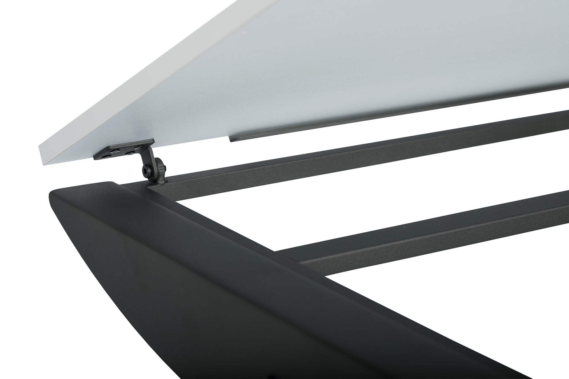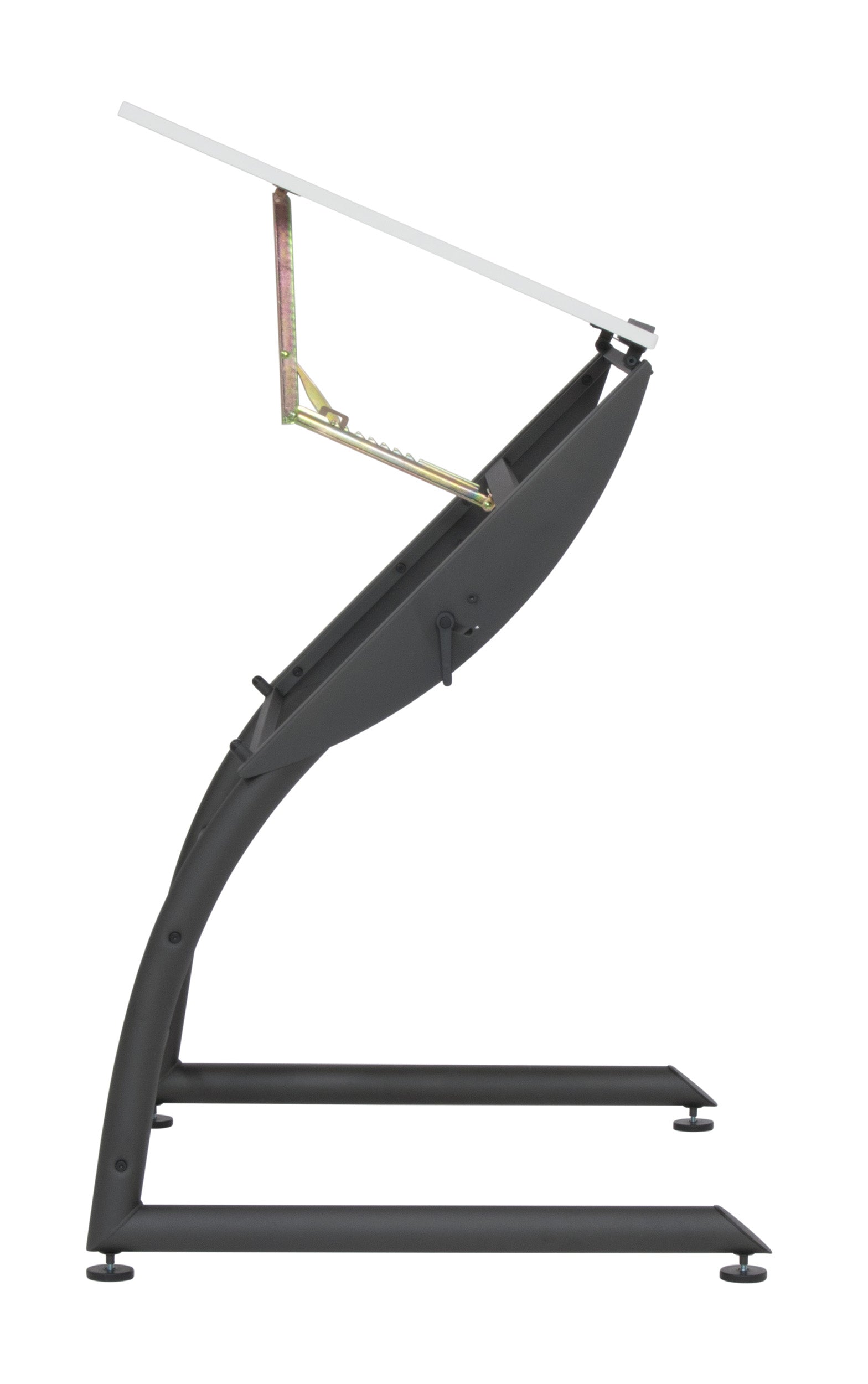 The innovative features of the TriFlex Drawing Table by Studio Designs make it a unique addition to your office or studio. The “Dual Tilt Design” adjusts from standard desktop height of 31” to a standing desk height of 39.5”. The side handles allow you to lock into these positions for your various needs and projects. It also allows the tabletop to tilt up to 22 degrees in the standing position or up to 68 degrees in the sitting position. The near vertical tilt makes it the perfect art table when using art pencils or pastels. The dust and excess residue can effortlessly be wiped to fall on the ground. The ingenious versatility of this table makes it three desks in one. It can be used as a standard, drafting or standing desk.