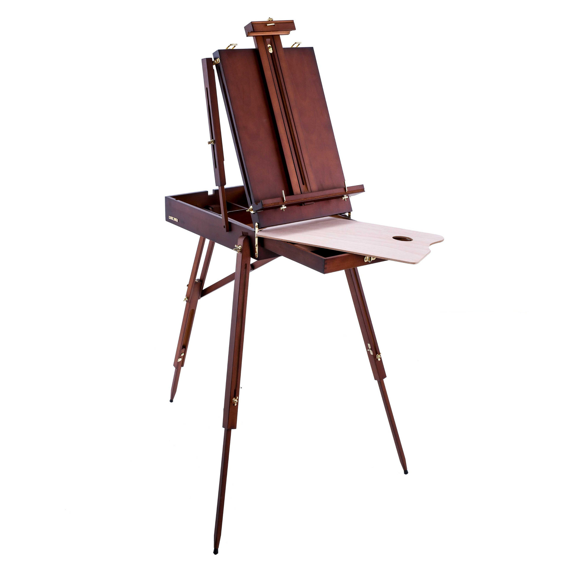 <p><b>U.S. Art Supply Coronado Walnut Easel, Large Adjustable Wooden French Style Field and Studio Sketchbox Tripod Easel with Drawer, Artist Wood Palette, Premium Beechwood</b></p>
