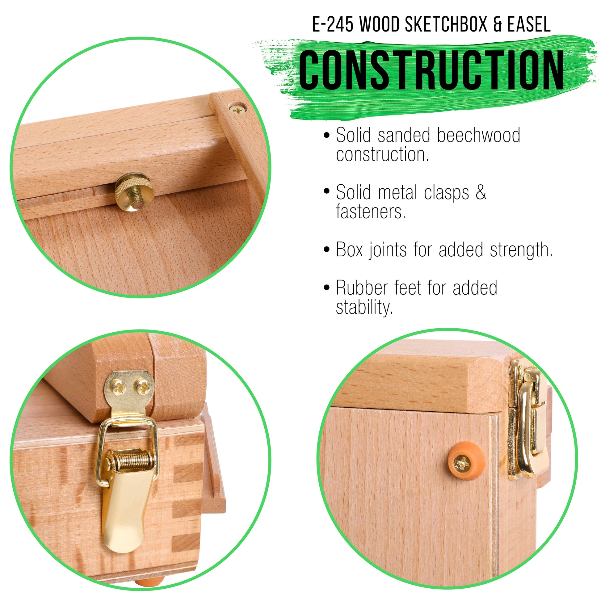 U.S. Art Supply La Jolla Adjustable Wood Table Sketchbox Easel, Beechwood