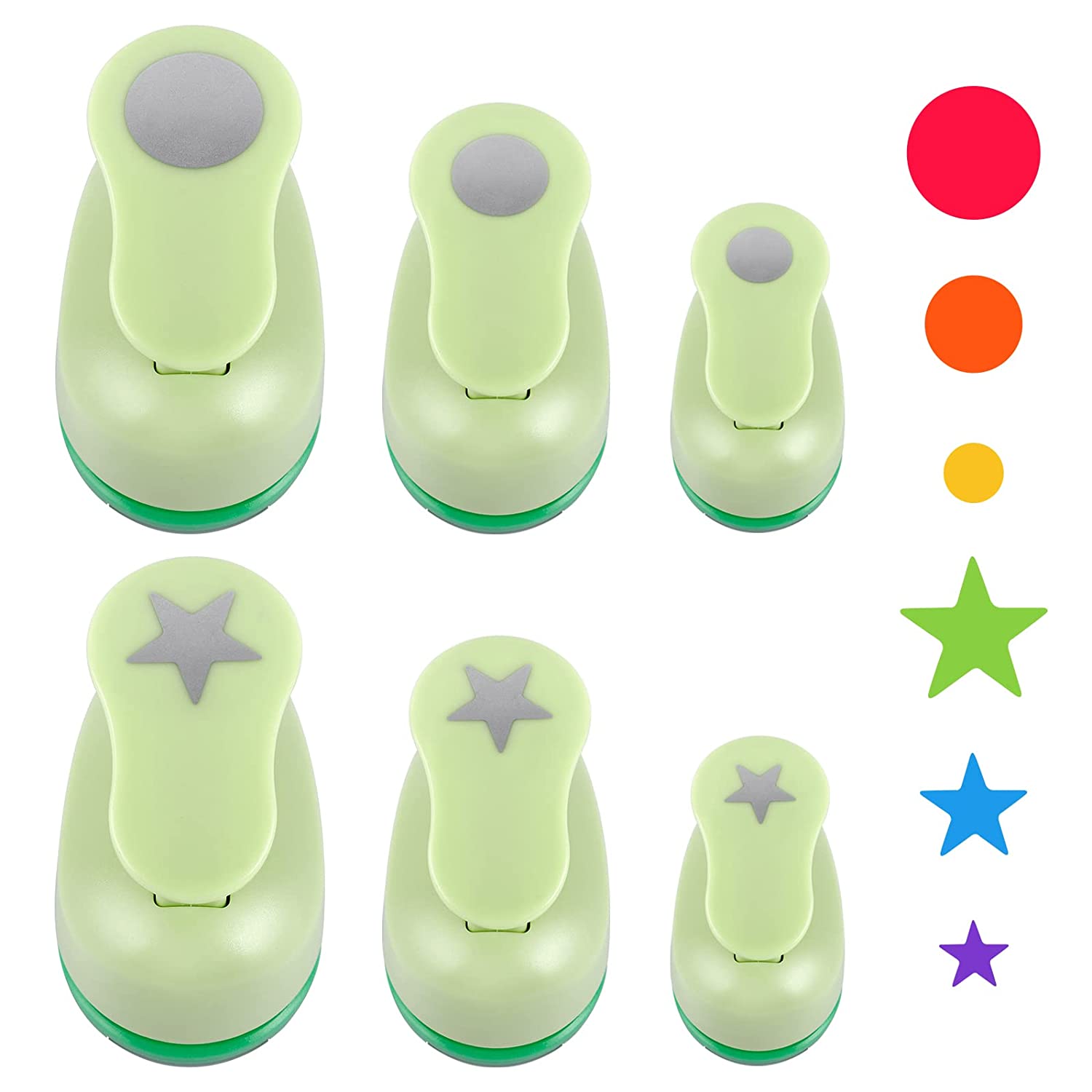 - ❤️ 【Size & Guarantee】How large are the actual paper punches ? -- 2.7"x 1.7" X 2.2". What size are the craft punch out? -- 0.98"-1.18". 6 PCS 1 inch hole punch ergonomic handle, do not cause paper jam, fast and easy to punch out shapes.