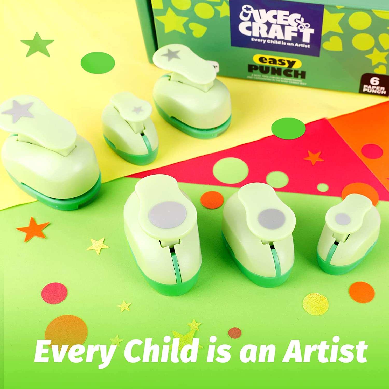 UCEC 6 Pcs Craft Hole Punch, 1-Inch Paper Puncher Handmade Hole Scrapbooking Punches, Different Shape Crafting Designs for Kindergarten Teacher Office Supplies Kids