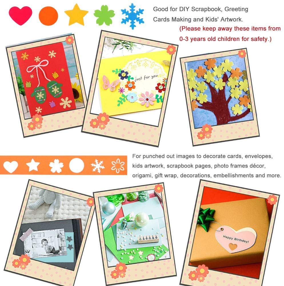 - ❤️ 【Perfect Gifts】 For punched out images to decorate cards, envelopes, kids artwork, scrapbook pages, photo frames décor, origami, gift wrap, decorations, embellishments and more. The kids hole punch can excite children's curiosity and promote imagination, developing intelligence, exercising the ability of using hands and brain.