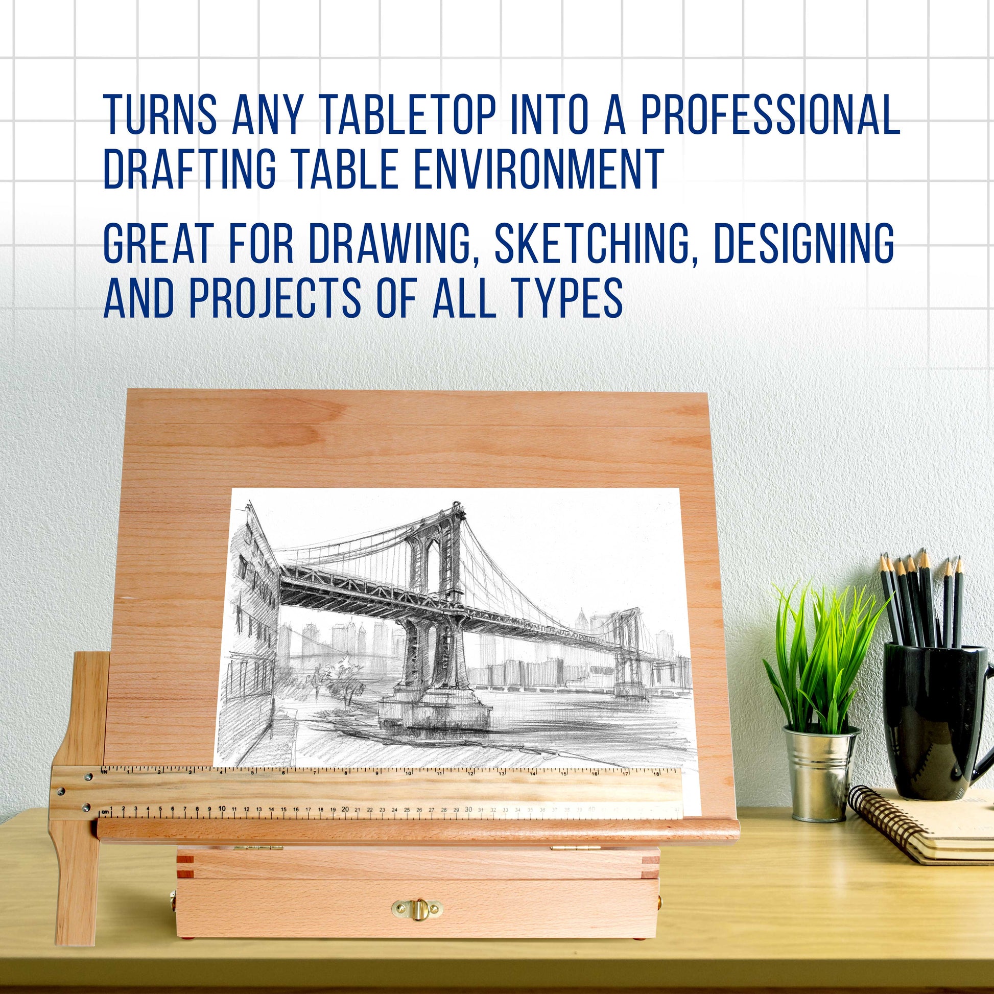 US Art Supply "Sketch Master" Adjustable Wood Artist Drawing & Sketching Board With Storage Drawer